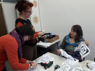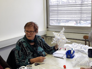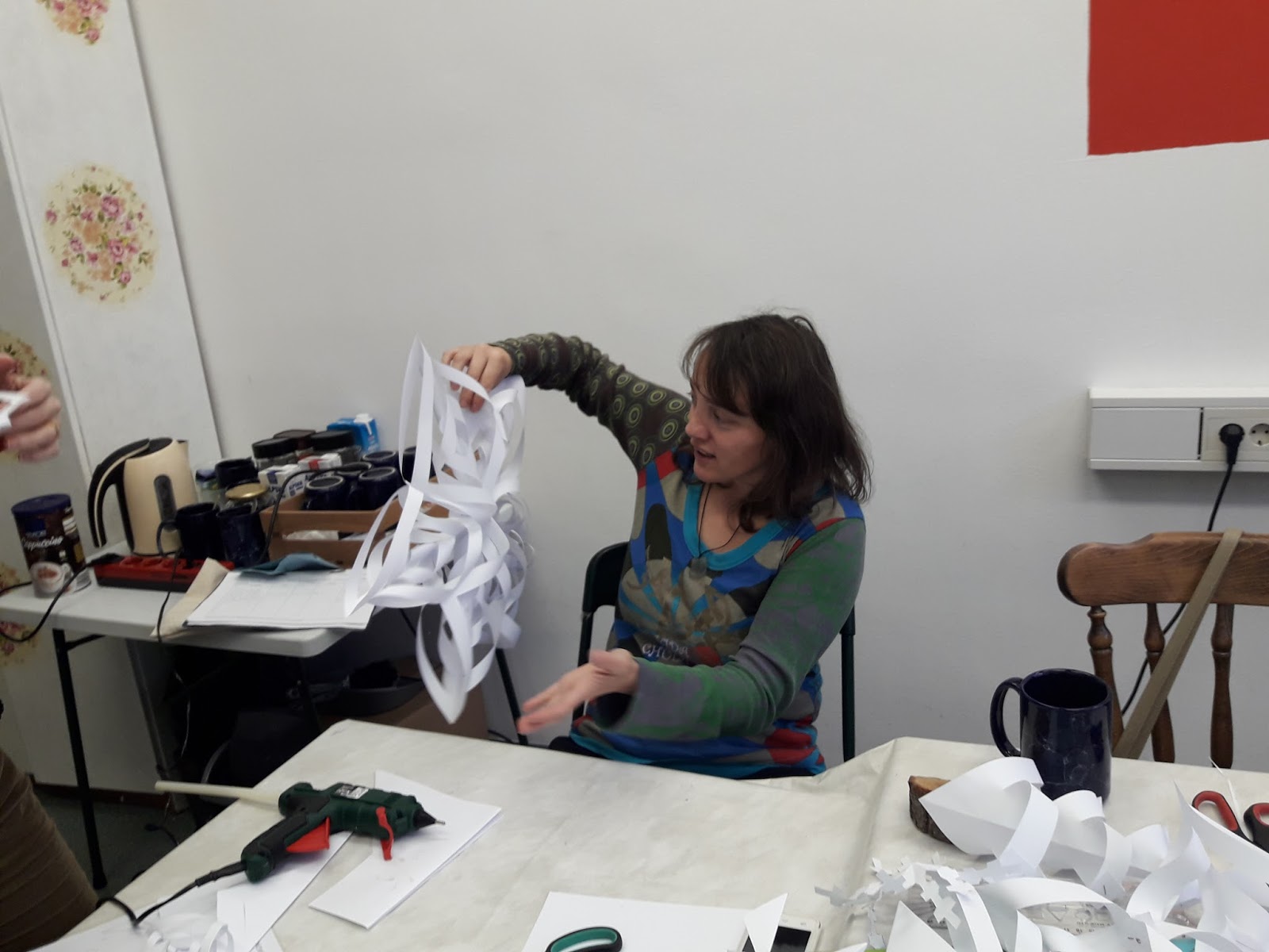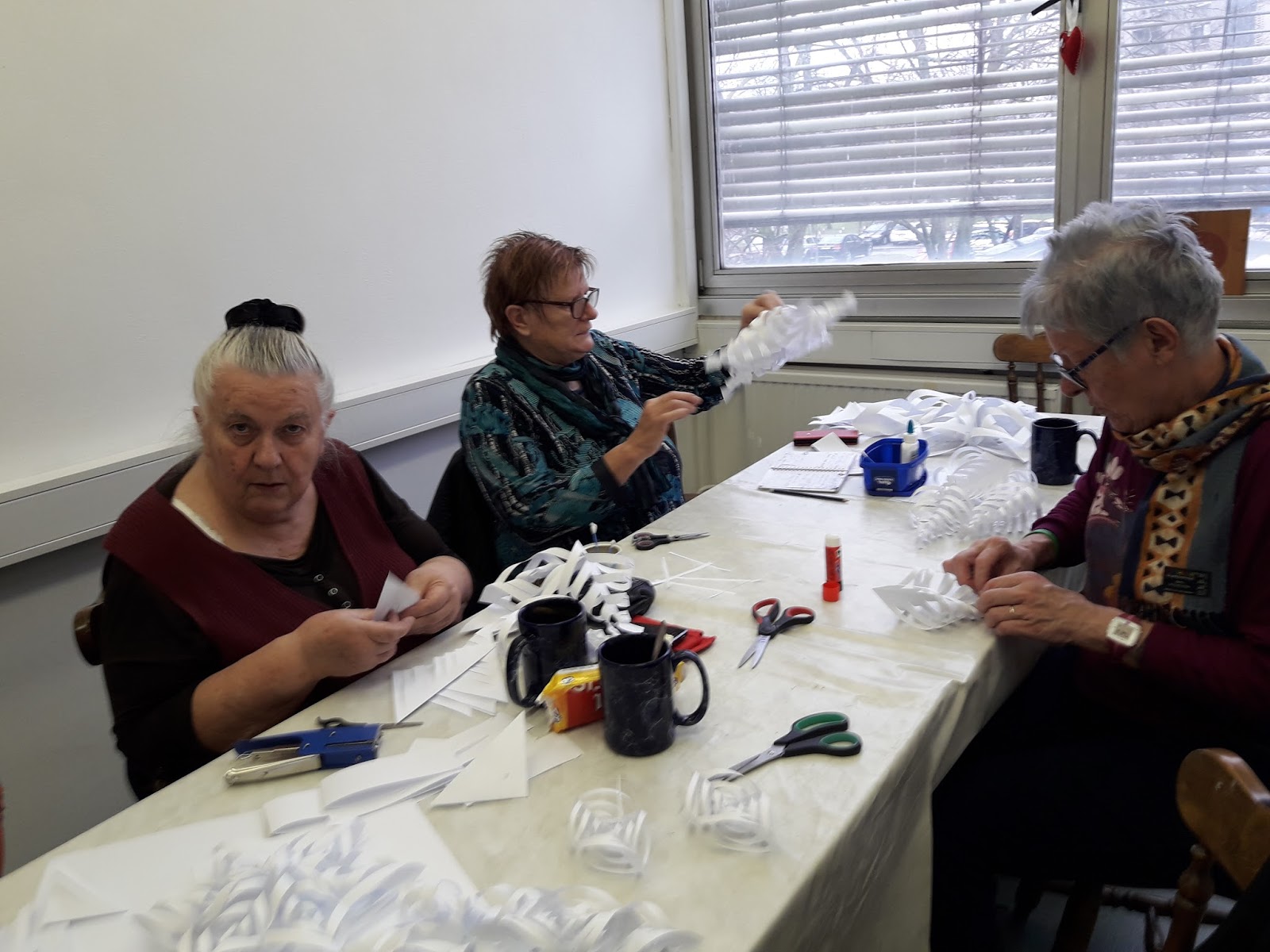 V sredo 13.12.2017 ob 10 uri smo se zbrali na Srečevalnici na Fužinah v prostorih KORK Fužine, Preglev trg 15 v Ljubljani. Na srečevalnici smo izdelovali 3-D papirnate bele snežinke. Ustvarjalno delavnico je vodila Barbara Komes.
