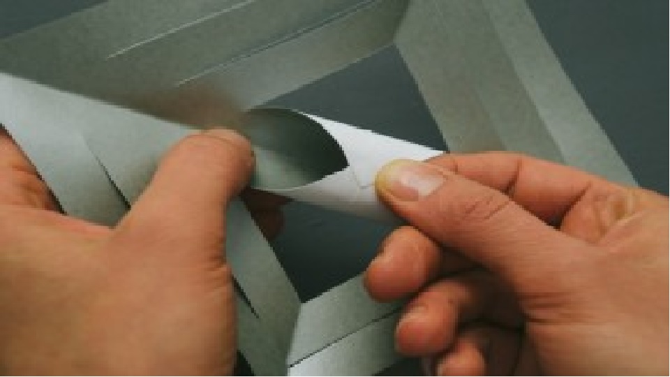Papir obrnemo in na enak način lepimo nasprotne konice trikotnika med seboj.
